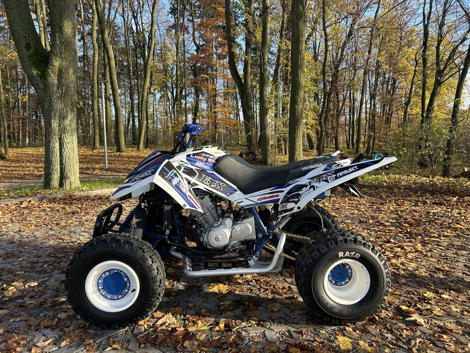 Witam mam na sprzedaż Lucka z silnikiem od Hondy Cb500 (pc26). Świeży olej, płyn chłodniczy, płyn hamulcowy, wyczyszczone i zsynchronizowane gaźniki (quad serwisowany w Kamix Nidzica, książeczka serwisowa z napraw). Z dodatkowego wyposażenia: -licznik Koso -licznik temperatury Koso -kołpaki FlameCut -grab bar Flame Cut -manetki Er6 -obite siedzenie w eko skórę [z logo Hondy) -amortyzator tył gazowy -pompa hamulcowa tył er6 -halogeny led przód Quad gotowy do jazdy, pali ciepły czy zimny. Dorzucam opony szosowe.
