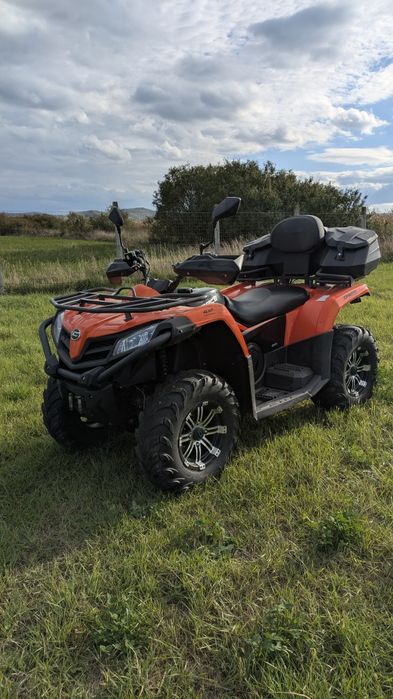 Vând ATV Cf Moto 520L (omologat pentru 2 persoane ) Detalii: -se află în stare bună și îngrijit , nu s-a făcut offroad extrem -an fabricație 2022 -înmatriculat in 2022 pe primărie (cu numere galbene) -Tracțiune: 2WD /4WD, cu posibilitatea blocării diferențialului frontal -Transmisie: automată CVT, cu trepte P/R/N/H/L -Suspensii individuale -Motor: monocilindru, 4 timpi, răcire cu lichid, 495 cm³ -Dotări suplimentare: ladă spate , cui de remorcare -Schumburi de ulei motor și grupuri făcute recent -Lumini full led -Genți aluminiu -Rulaj: 7845 km