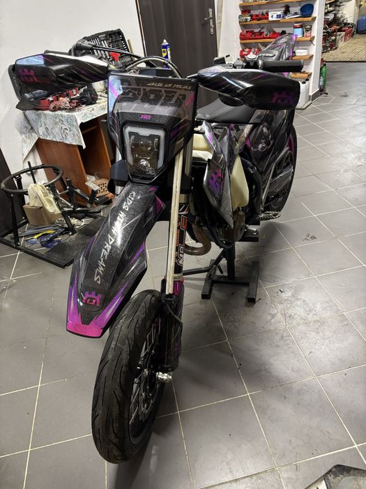 Witam do zaoferowania mam husqvarne fe 350 z 2020. Odkąd ja kupiłem większość kilometrów została zrobiona na drodze było kilka wyjazdów w teren. Została zakupiona z przebiegiem 190mth przy 197mth zostal wykonany przegląd silnika oraz wymieniony tłok aktualny przebieg 232mth olej był zmieniany co 10-15mth ostatni przegląd zaworów 10mth Huska doposażona jest -osłony chłodnic -osłona pod silnik wraz z kiwka -wentylator spal -progresywny system tłumienia kierownicy PHDS Posiadam zestaw kół enduro z przodu zamontowana dętka w tylnym kole tubliss są jescze dwa komplety plastików jedne oem drugie szare z okleiną. Motocykl zarejestrowany i ubezpieczony Możliwość kupienia bez kół supermoto 24999zł