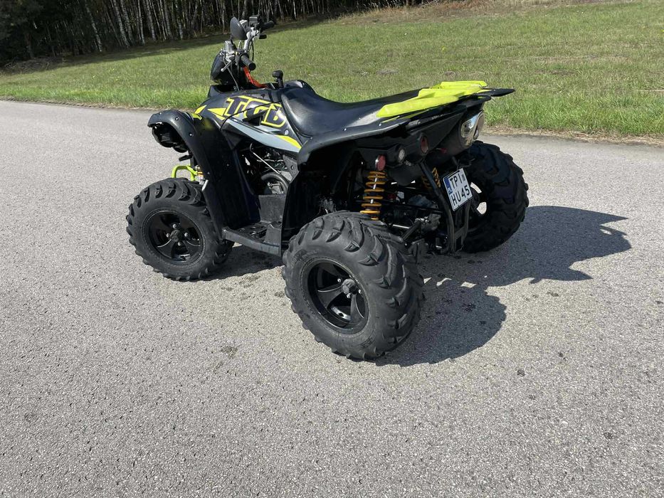Quad TGB Target 550 4x4 IRS – 2015r – Gotowy do jazdy! Na sprzedaż oferuję niezawodnego quada TGB Target 550 z napędem 4x4, rocznik 2015 – w pełni sprawny, regularnie serwisowany i gotowy do jazdy zarówno w terenie, jak i do pracy. Najważniejsze informacje: Silnik: 503 cm³, 4-suwowy, chłodzony cieczą Przebieg: 5592 km Napęd: 2x4 / 4x4 z możliwością przełączania Skrzynia biegów: automatyczna CVT (R-N-L-H) Zawieszenie: niezależne, IRS – bardzo komfortowe w terenie Hamulce: tarczowe na wszystkie koła Wyciągarka: Nie Homologacja: TAK (zarejestrowany) Zarejestrowany / opłacony: TAK Stan techniczny: Quad w pełni sprawny, używany rekreacyjnie. Pasek napędowy po wymianie Świeżo po serwisie olejowym Gotowy do pracy i jazdy rekreacyjnej Homologacja L7e – zarejestrowany jako pojazd samochodowy inny Świetny na wypady w teren Przygotowany, garażowany, nie katowany Stan techniczny: bardzo dobry – wszystko działa jak należy. Lokalizacja: Kije Posiada ślady użytkowania jak na zdjęciach.