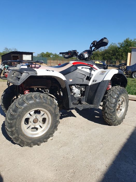 Vand Dragonfly 4x4 /treapta de forta 3500 de km Cauciucuri 70% Lumini semnale faruri totul functional Troliu Ladă ( dar nu este in poze) Cui de remorcare An 2014 Se vinde ca nou Mici remedii la motorasul de 4x4 Frana de stationare senzor vitezometru Carenele in stare perfecta Se ofera acte pentru înmatricularea atv ului