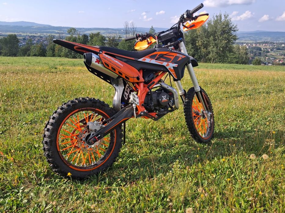 *Witam mam do sprzedania crossa w idealnym stanie . Ma przejechane 12 motogodzin i jest dopiero po pierwszej wymianie oleju . Sprzedaje ponieważ z niego wyrosłem. Ponizej zamieszczam więcej informacji : DANE TECHNICZNE * * SILNIK: 4T CHŁODZENIE: Powietrzem POJEMNOŚĆ: 125cm3 MOC: 14 KM SPALANIE: 2l/100km ROZRUCH: elektryczny + kopka KOŁA: 19/16 cali HAMULCE PRZÓD: tarczowe hydrauliczne HAMULCE TYŁ: tarczowe hydrauliczne ZAWIESZENIE PRZÓD: Amortyzatory Olejowe ZAWIESZENIE TYŁ: Amortyzator Olejowy z regulacją PRĘDKOŚĆ MAKSYMALNA: ok. 80km/h Skrzynia: Manualna Motogodzin: 12 WYMIARY Wysokość od ziemii do siedziska: 84cm - - - * * WYPOSAŻENIE * * -Przednia lampa LED -Rozrusznik elektryczny + kopka -Wysokiej jakości opony typ-enduro -Sportowy układ wydechowy -Handbary - osłony na ręce -Licznik motogodzin Po więcej informacji proszę o kontakt telefoniczny pod numerem 57*****55 Odbiór tylko osobisty . Pozdrawiam