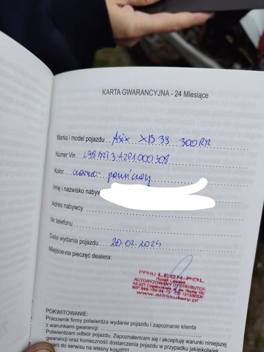 Sprzedam cross asix xb39 o pojemności 300cm³ . Motor zakupiony nowy , na początku 2024 roku. Gwarancja 9 miesięcy. Więcej informacji pod nr tel 7*2*2*1*0*7*4*7*1