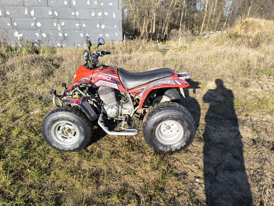Witam, posiadam na sprzedaż quada Barossa 250, sprawny jeżdżący z kilkoma dodatkami i modyfikacjami Przerobione hamulce z przodu z bębnów na tarcze Przerobiony dolot powietrza z airboxa na stożek (zabudowany w miejscu starego airboxa) Koła 8 cali z kostkami na tył Koła szosowe z łańcuchami Posiadam komplet plastików w gorszym ale da się z nich coś jeszcze urzeźbić Amortyzatory przód i tył Piasty na tył Zestaw do przerobienia na 2 gaźniki (parę elementów brakuje) Drugi silnik w częściach (uszkodzoną była skrzynia) idealny dawca Zregenerowane sworznie w wahaczach w firmie REGUM posiadam paragony Wszystkie części oddaje dla kupującego Napewno znajdzie się coś jeszcze. Quad zarejestrowany w Polsce i ubezpieczony Przegląd do 23.12.2025 Ubezpieczenie do 28.04.2026 Cena jaka mnie interesuje to 6500 z możliwością negocjacji na miejscu Osoby zdecydowane proszę o kontakt telefoniczny 79*******58