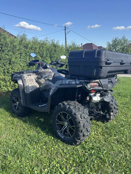 * Cf moto 1000 an 2020 model lung omologat pentru 2 persoane , recent adus in tara din Germania , ofer toate actele pentru inmatriculare . 07******67 *Varianta T3B * Mecanic se prezinta in stare perfecta , atv dezvolta 75 cp * Estetic nu are carene lovite sau sparte . * Are 5600 km dispune de : * 4X4 la buton cu diferential blocabil fata / spate * Servodirectie asistata electric * Scut protecție sub atv si planetare * Faruri / stopuri cu led * Jante aluminiu cu anvelope in stare ff buna *Bulbar fata, overfendere *Ledbar *Lada depozitare spate TGB Ofer video cu atv pe whatsapp Se poate vedea in jud.MM 7900€ Nu schimb !