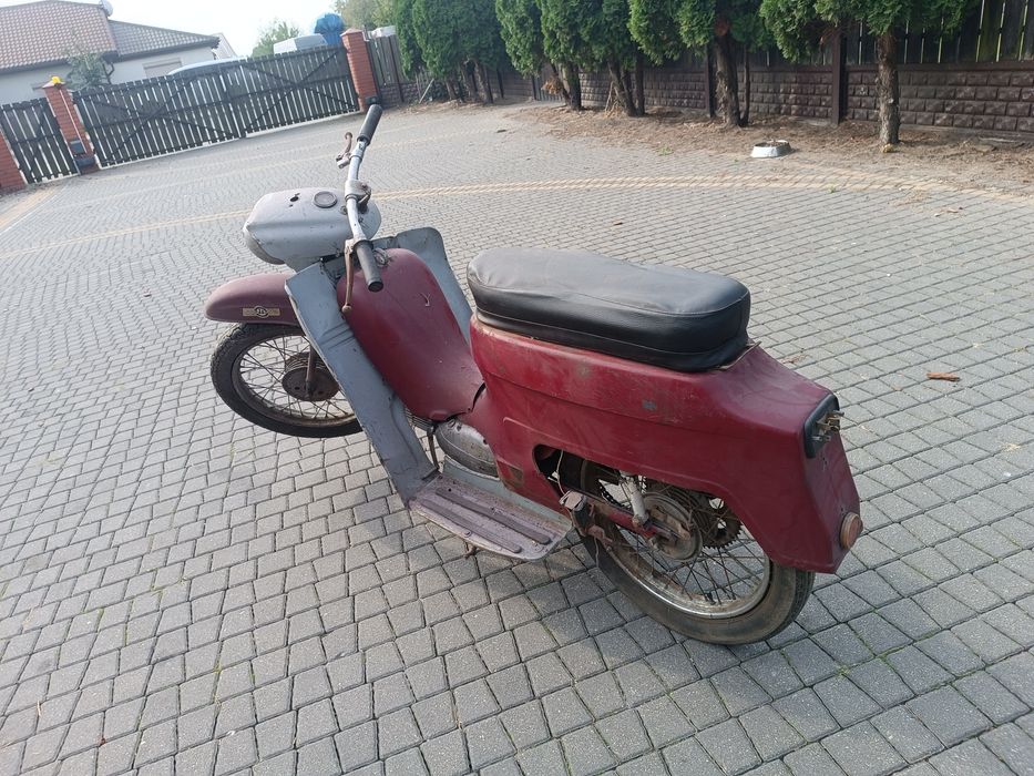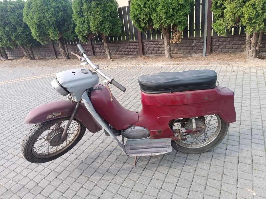 Witam do sprzedania maszyna ze zdjęć stan i kompletność jak na zdjęciu do odrestaurowania silnik się kręci ale nie na chodzie rejestracja na zabytek we własnym zakresie na zdjęciach wygląda lepiej niż w rzeczywistości więcej na tel możliwości wysyłki i zamiana na motocykl quad cross prl auto WSK wfm shl Simson Jawa skuter itd