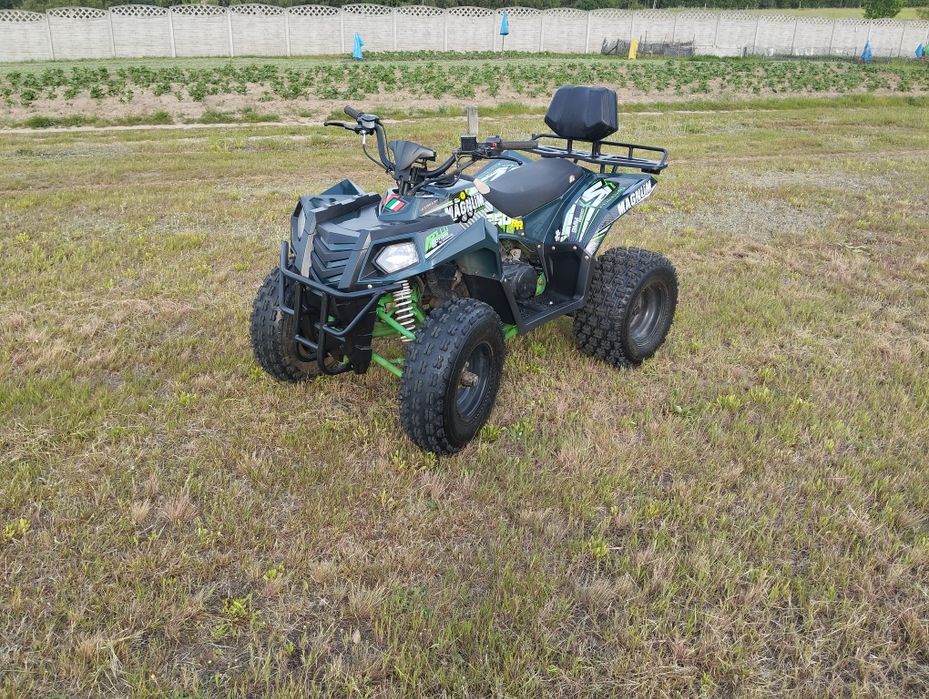 Sprzedam quada Apollo Magnum z 2019 roku. Quad w bardzo dobrym stanie technicznym i wizualnym, regularnie czyszczony, garażowany, używany jedynie rekreacyjnie. Silnik 250 – mocny, niezawodny i elastyczny, idealny zarówno dla początkujących, jak i bardziej doświadczonych użytkowników. Dane techniczne: Model: Apollo Magnum Rok produkcji: 2019 Pojemność: 250 Przebieg: 2000 km Skrzynia biegów: automat Napęd: łańcuch Opony w bardzo dobrym stanie Akumulator sprawny, quad odpala bez problemu