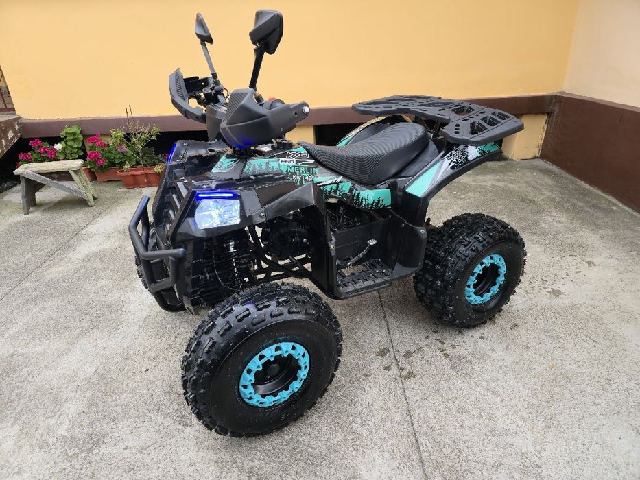 Vând atv KXD Merlin de 140cc Atv-ul este cu factura si garantie Are frâne pe disc față - spate Apărători la maini + Oglinzi Farurii cu led Motor 140cc Combustibil: benzină simplă Roți – 8 inch Sistem amortizare: pivoți pe față pentru o manevrabilitate ușoară Șoc manual la pornire Cutie de viteze semiautomată 3 + R Transmisie pe lanț BullBar din metal Bord electronic și kilometraj digital Pornire elctrică (la buton) Indicator schimbarea vitezei: liber și marșarier Portbagaj Spate + Spătar