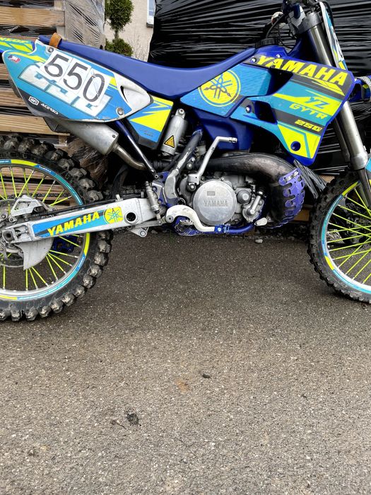 Sprzedaję moją YZ 250 z 1999 roku. Motocykl mam od dłuższego czasu, pali od strzała i ma nabite około 90 mth. Wszystko robione na bieżąco – przy 90 mth był zrobiony pełny remont (korba, wał, łożyska skrzyni itp.), mam paragony. Motor ma naprawdę dużo mocy – około 60 KM, wstaje na koło bez strzału ze sprzęgła. Był jeżdżony też na zawodach i potrafił pogonić nowsze 250-ki. Dyfuzor oryginalny, spawany TIG-iem, szczelny, wata w tłumiku wymieniona, świeca nowa. Wizualnie jak to w starszym crossie – plastiki miejscami popękane, ale wszystko się trzyma i jest elastyczne. Tylny bieżnik ma ok. 75%, przód 60%, dorzucam drugą oponę na przód. Łańcuch mocny, mało się rozciąga nawet przy ostrej jeździe. Dodatkowo mogę sprzedać kevlarowe ochraniacze na kolana, rękawice i kask z kamerką GoPro – nie są w cenie motocykla. Sprzedaję, bo idę na studia i niestety trzeba zrezygnować z jazdy. Cena do dogadania. Oglądanie tylko w weekendy po wcześniejszym umówieniu.
