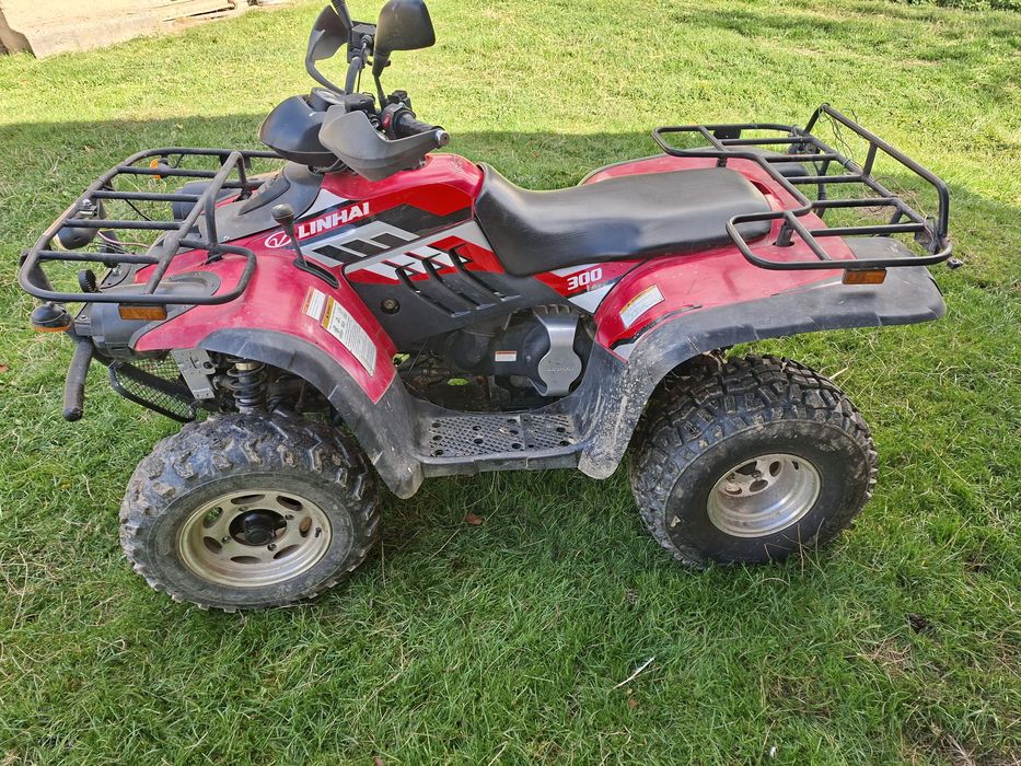 Linhai 300 4x4 worker 3200km luat de nou detin factura ,detin carte la el, este înmatriculat pe primărie. Cauciucuri spate noi , am schimbat pinionul de atac si bucsa cardan, uleiului in cutia de viteze , in grup fata/spate (motul) bujia este schimbata de iridium , burdufele la planetara schimbate ,magneto schimbat cureaua de transmisie, ulei motor ,ambreiajul a fost schimbat anul trecut ,filtrul de aer/benzina . Atv ul nu a fost răsturnat niciodată, il vând deoarece ies decât de 2 ori pe an !